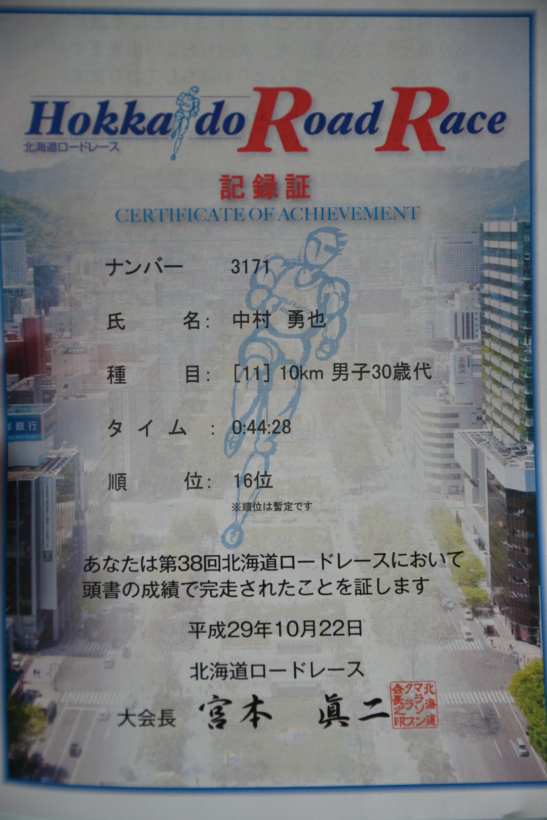 2017年10月22日に行われた北海道ロードレースの10キロマラソン(30代)に出場してきました!