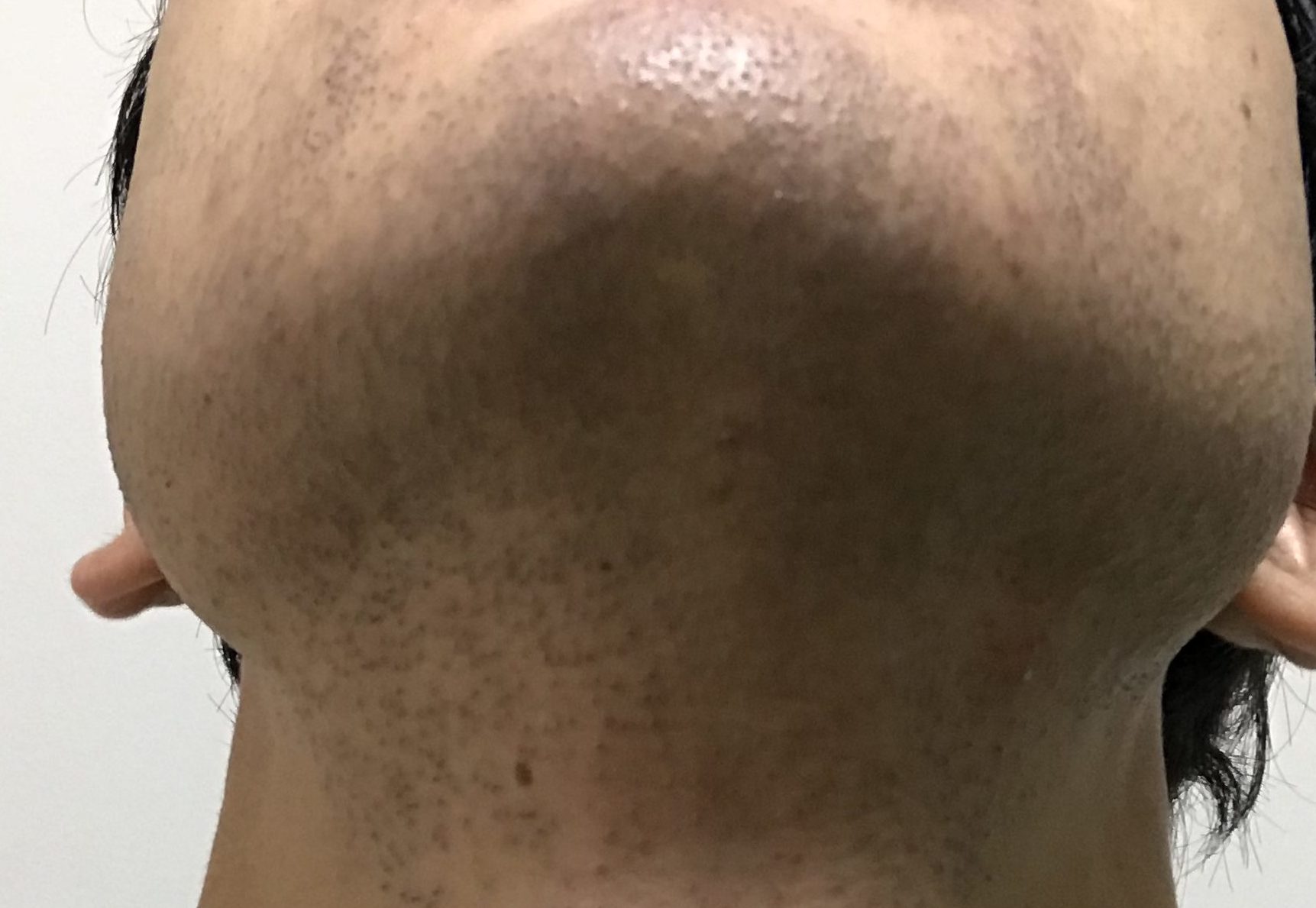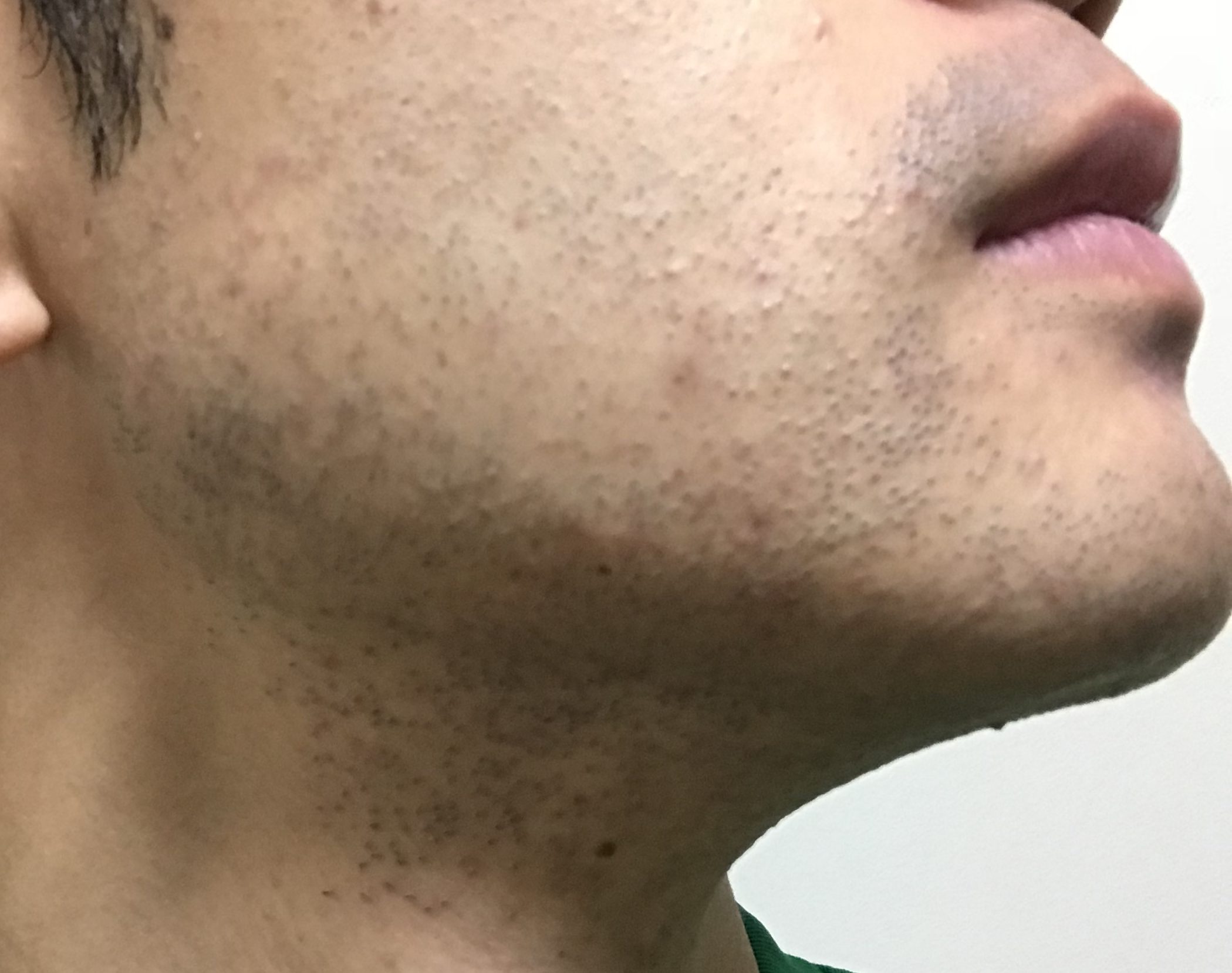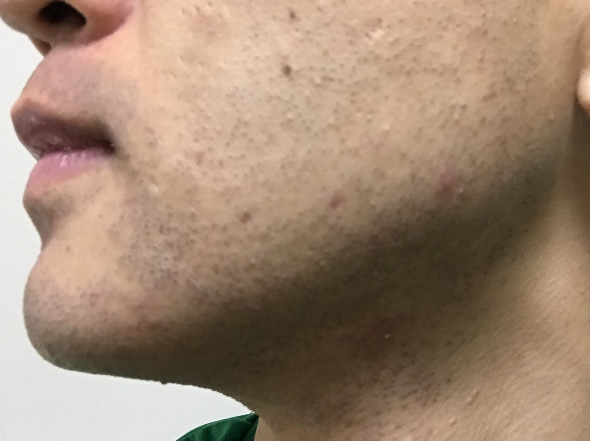 写真だと分かりづらいですが、あごの下に毛嚢炎(もうのうえん)というニキビのようなものが出来ていました。