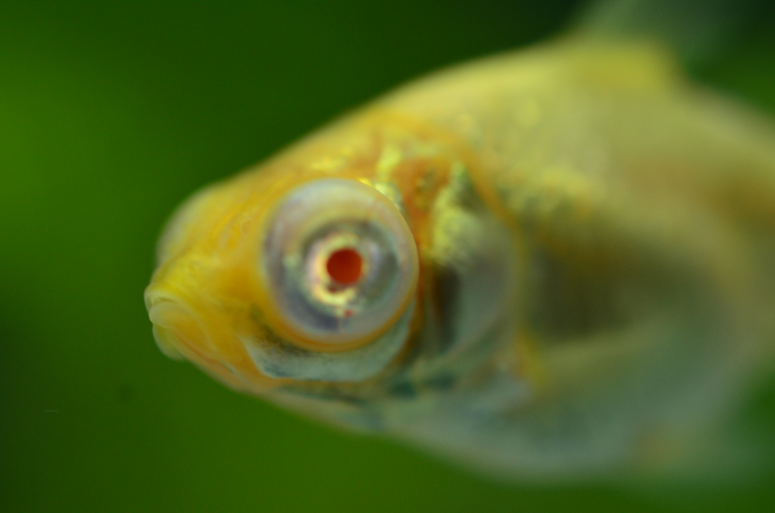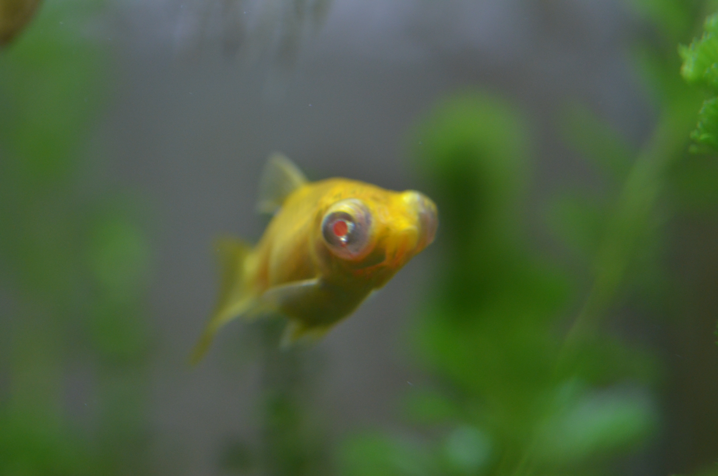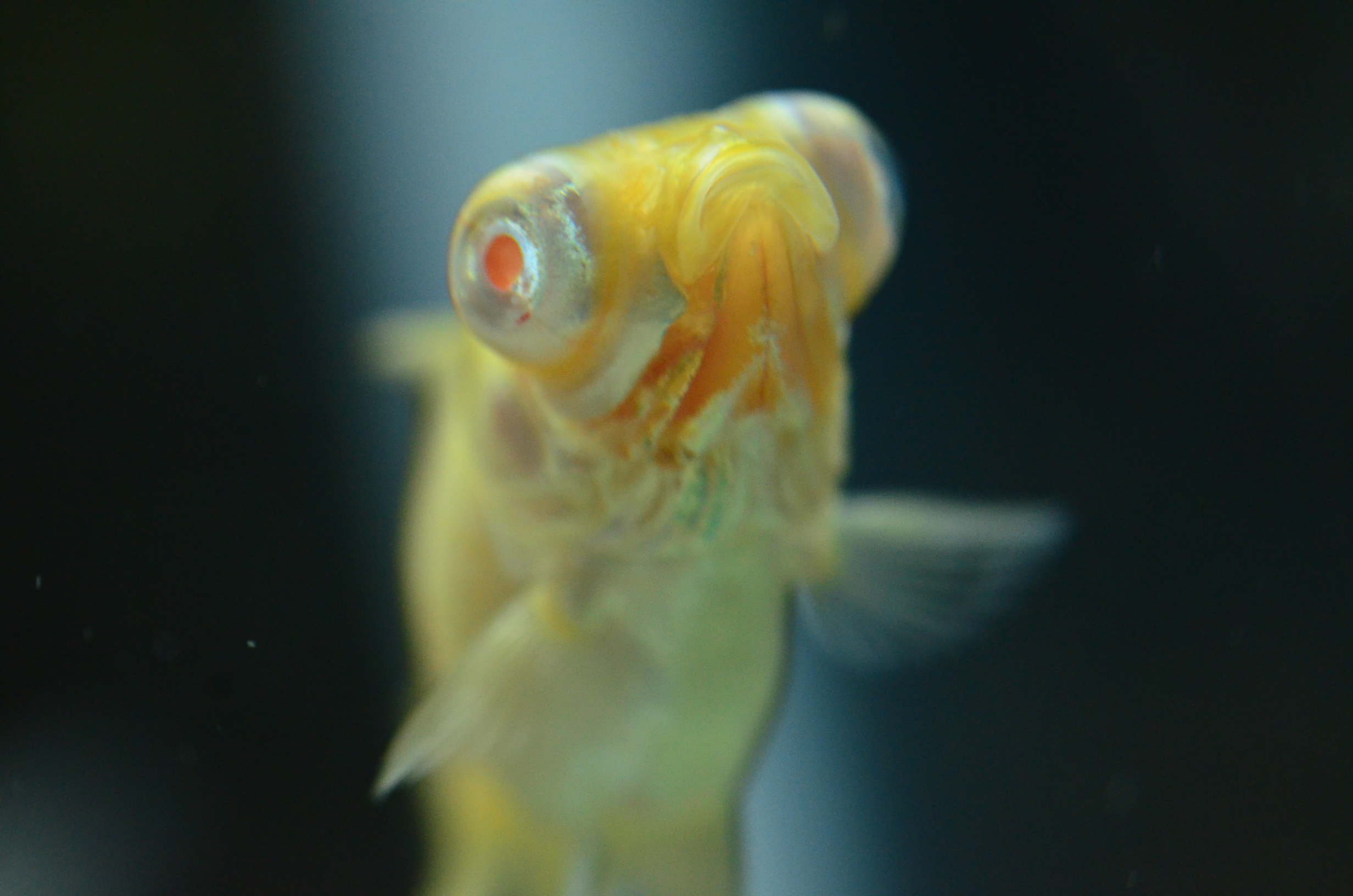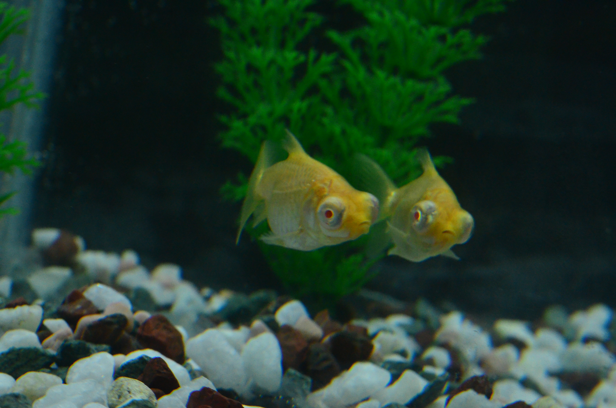 これが飼い始めたころのアルビノ出目金です。