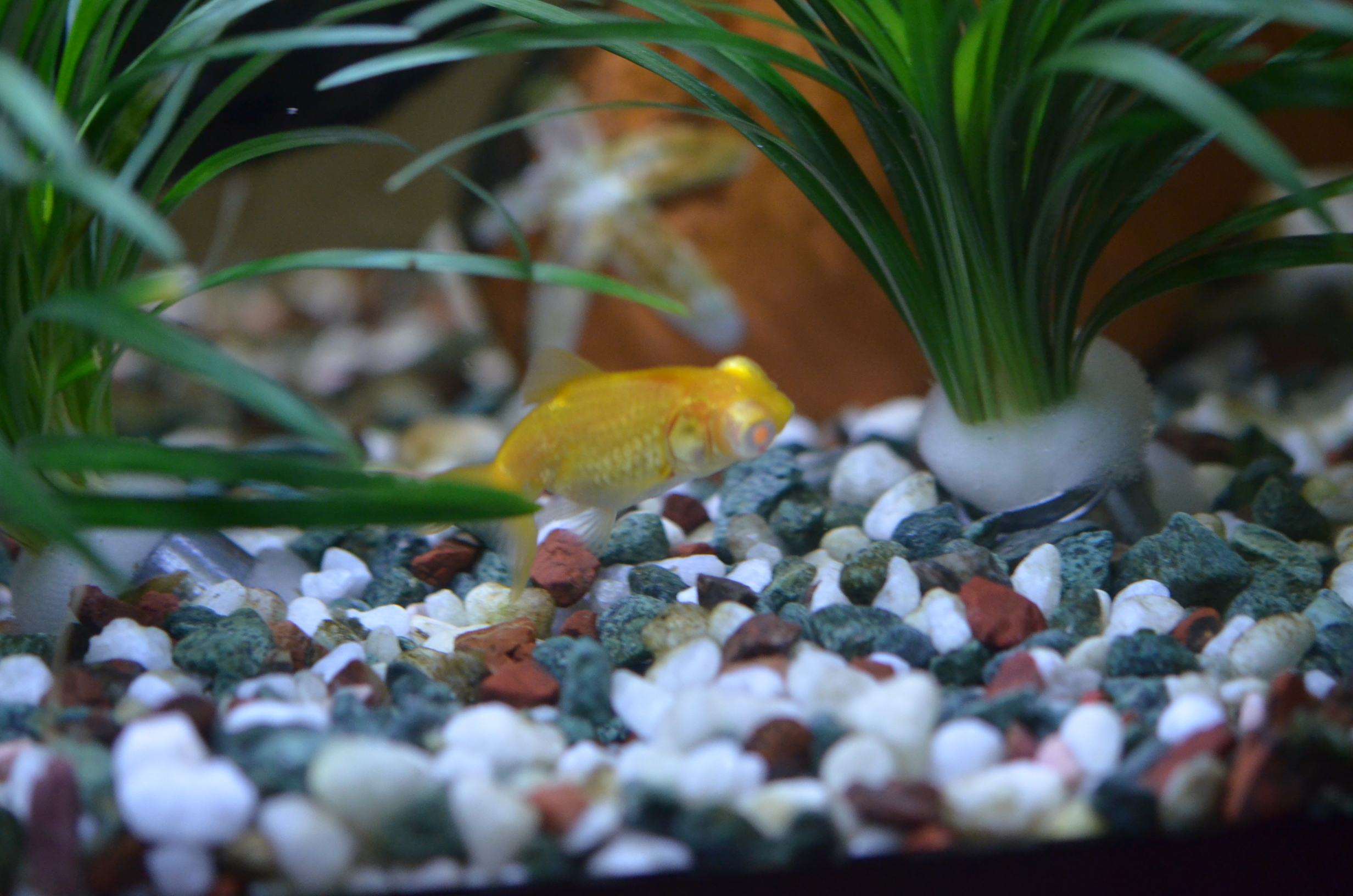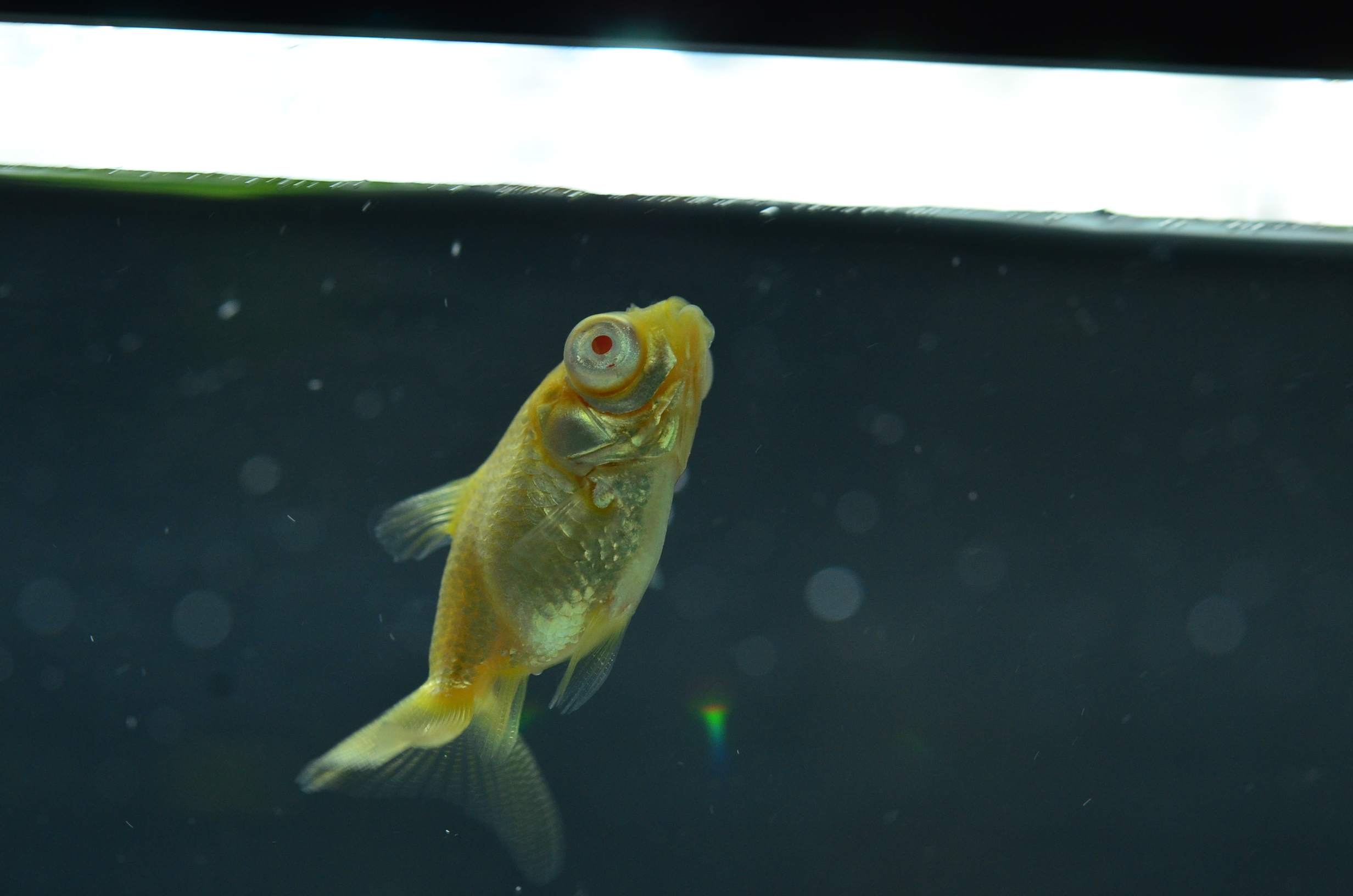 アルビノ出目金という種類で、飼っている中でも一番可愛い見た目の金魚でした。