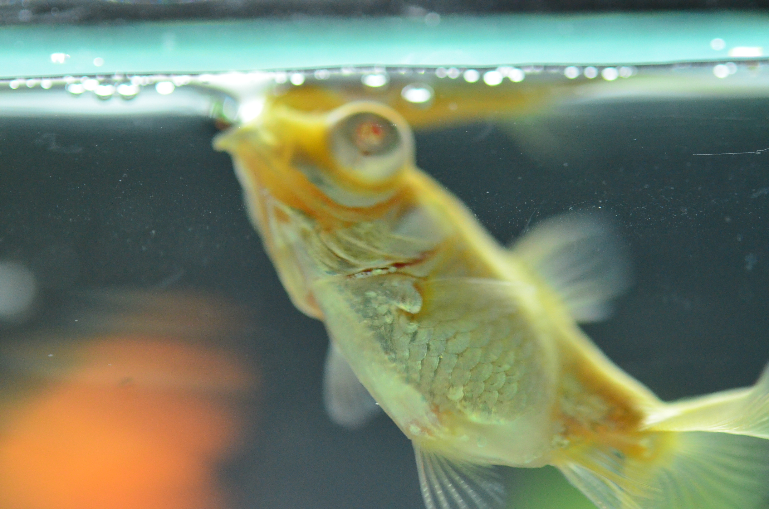 ひっくりかえっていても、近づいて水槽を軽くコンコンってやると普通に泳ぎだすので、そんなに気にはしていなかったです。
